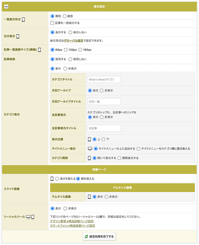 What’s New、店長日記、記事コンテンツの一括設定について