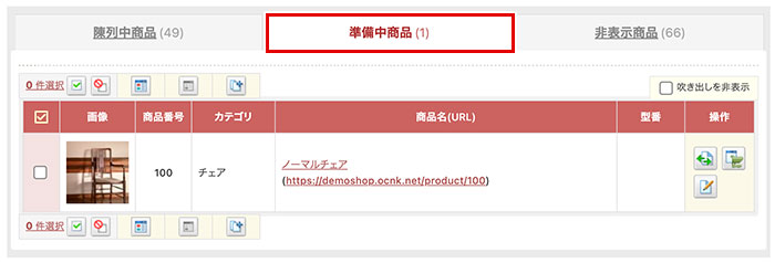 準備中商品タブ